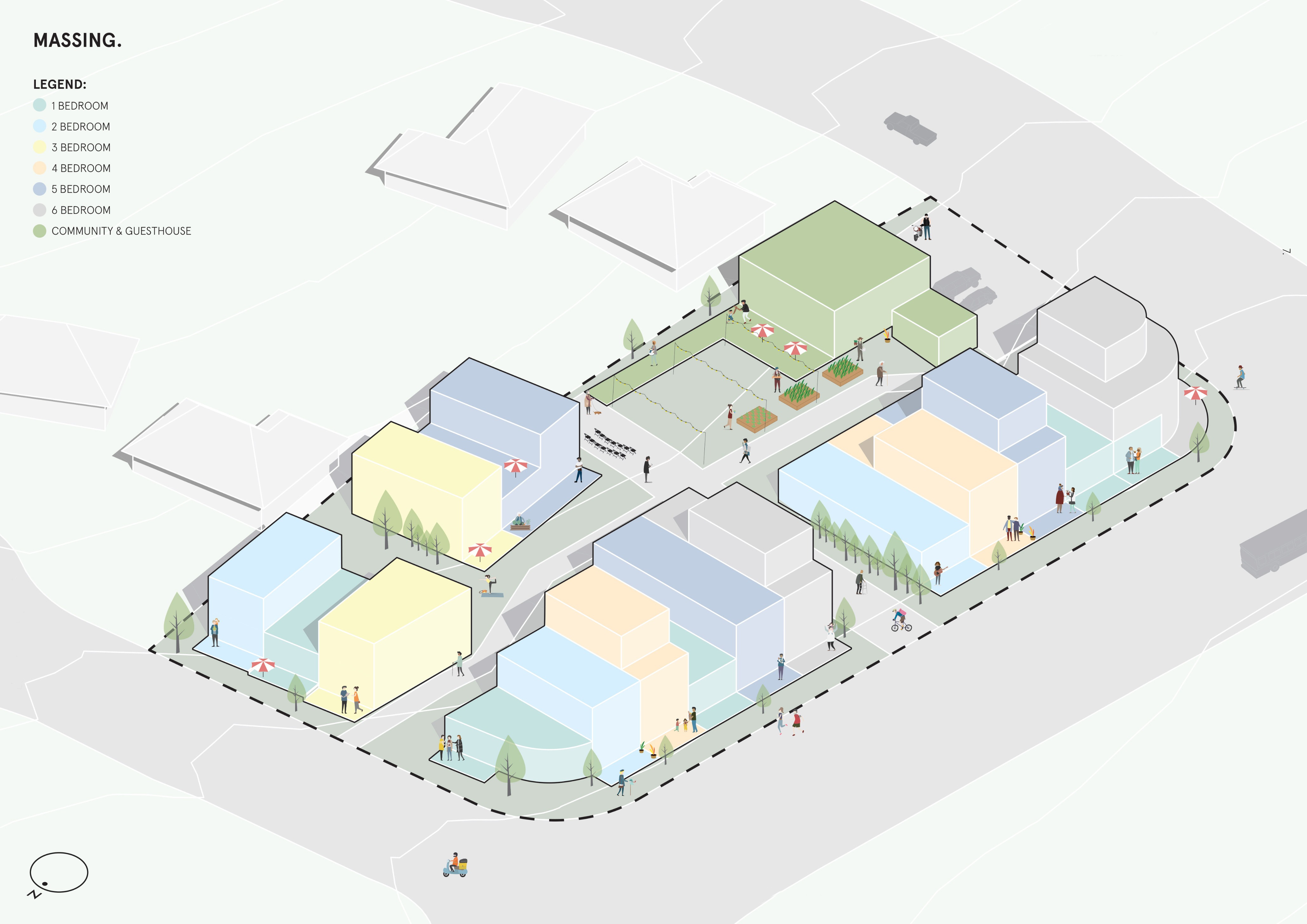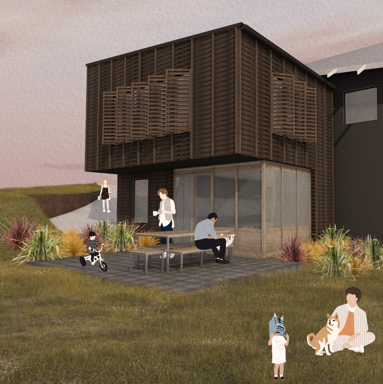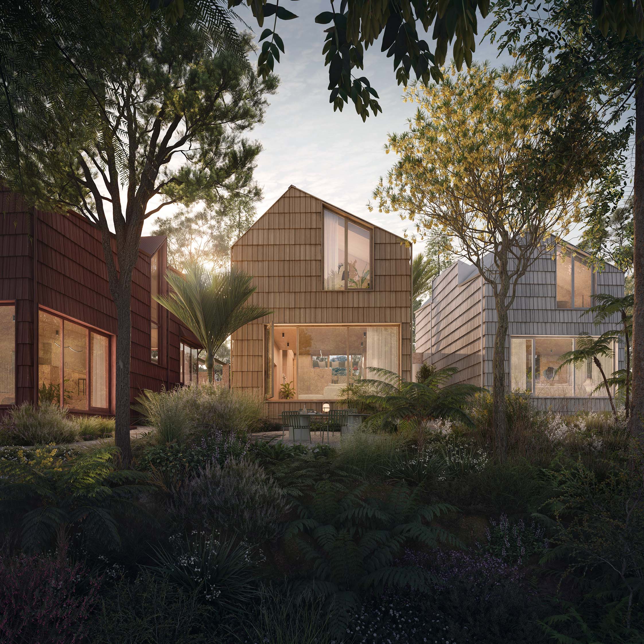 A cluster of four standalone homes occupying a site surrounded by bush of ecological significance, creating a micro community.